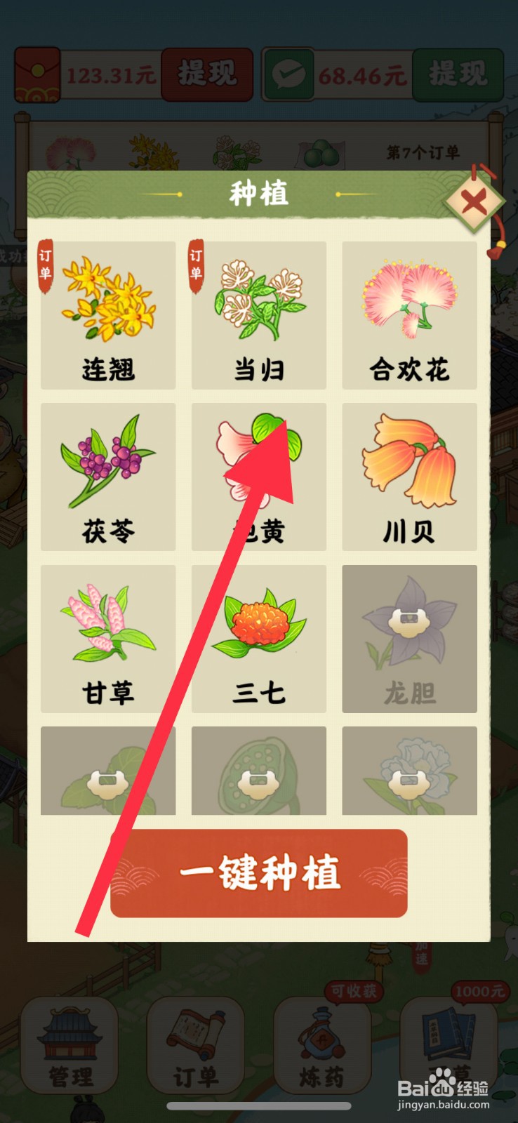 2、进入种植界面,点击当归